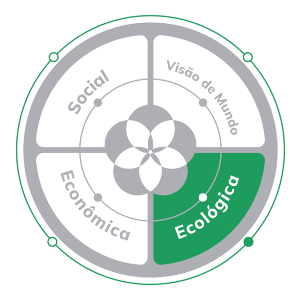 A Dimensão Ecológica se integra e complementa os aspectos Sociais, Econômicos e de Visão de Mundo para gerar sistemas regenerativos com real poder de transformação.