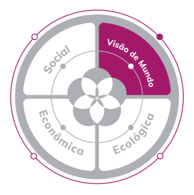 A Dimensão Visão de Mundo se integra e complementa os aspectos Sociais, Econômicos e Ecológicos para gerar sistemas regenerativos com real poder de transformação.