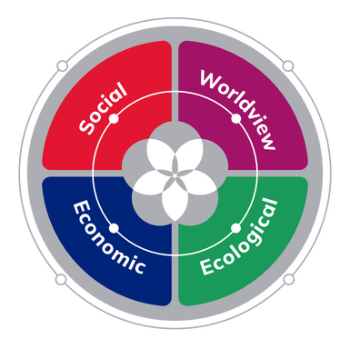 A comprehensive programme covering four dimensions of sustainability: social, ecological, economic, and worldview.